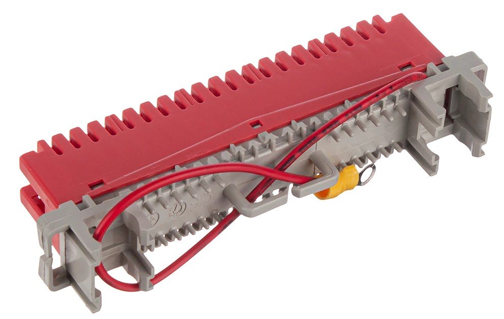 Плинт заземления универсальный ПВТ 10 пар, крепление на монтажный хомут или профили, красный