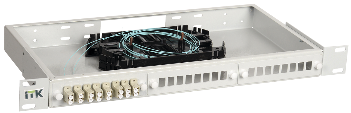 Оптический кросс 19", 1U, укомплектованный на 20 портов SC, МM 50/125 OМ4, стальной, серый, в комплекте: адаптеры, монтажные шнуры 1.5м, сплайс-кассета с крышкой, гильзы, заглушки.