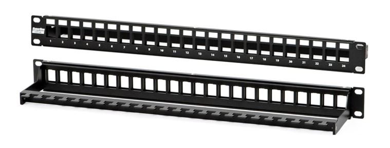 Модульная патч-панель 19", 24 порта, Flat Type, 1U, для модулей Keystone Jack, с задним кабельным организатором (без модулей)