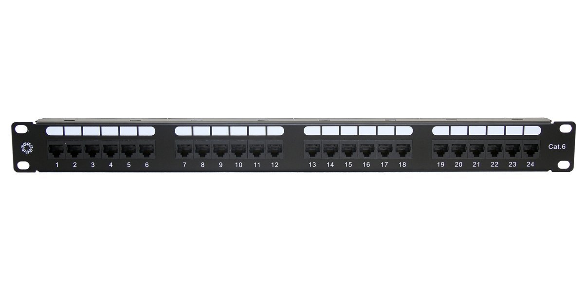 Патч-панель 19", 1U, 24 порта, категория 6, RJ45/8P8C, 110/KRONE, UTP, черная.