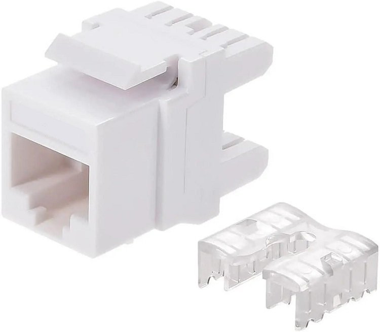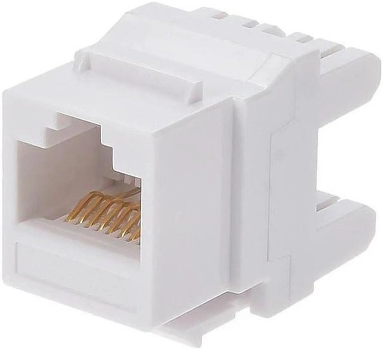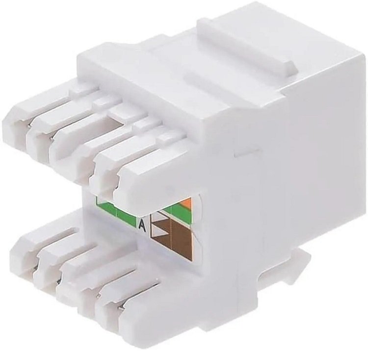 Модуль-вставка типа Keystone, категория 5e, RJ-45/8P8C, 110 IDC, 180 градусов, неэкранированный, белый.