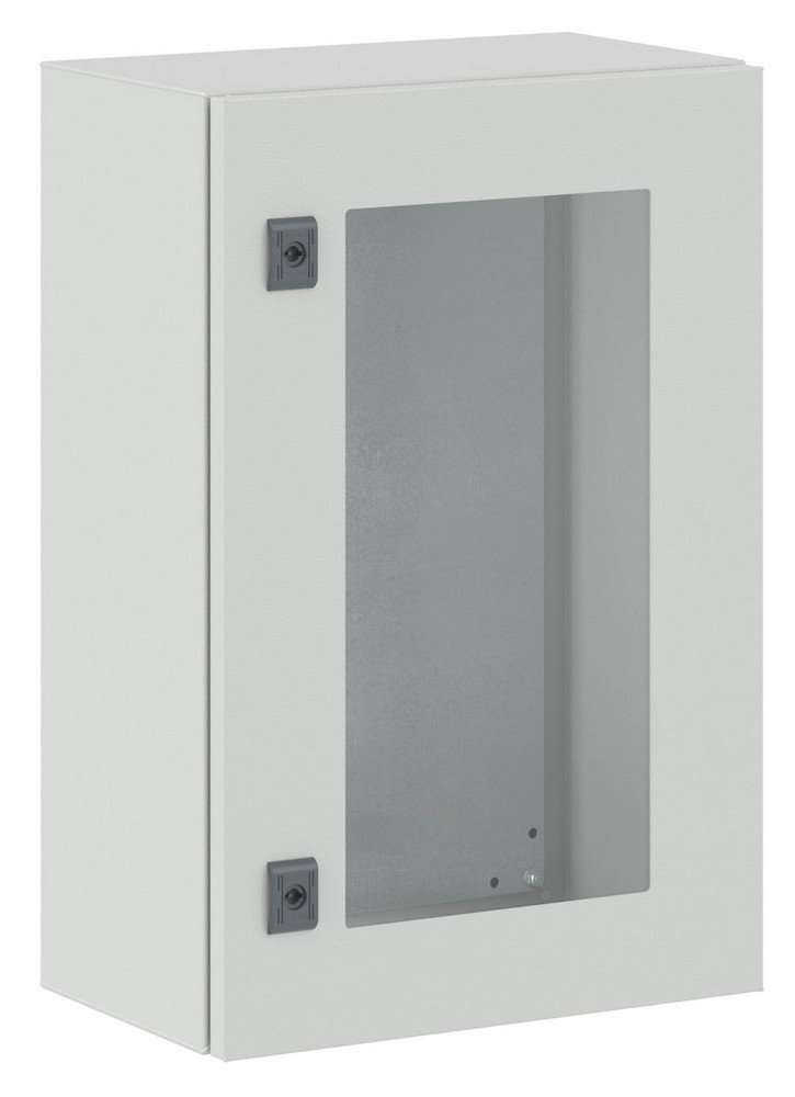 Навесной шкаф с прозрачной дверью, высота 600мм, ширина 400мм, глубина 200мм, степень защиты IP66, в комплекте с монтажной платой, дверью, замком без ручки, фланцем для ввода кабеля, монтажными аксессуарами