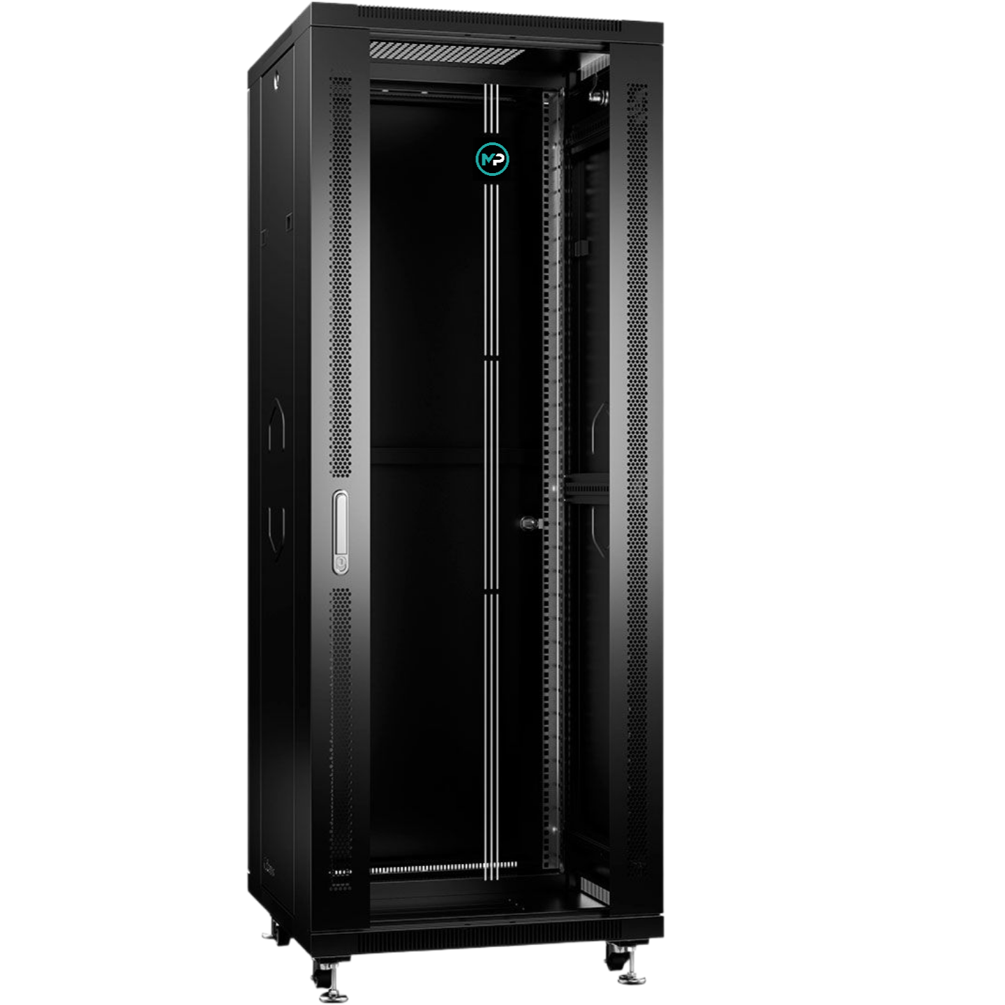 Шкаф телекоммуникационный 19" напольный, дверь: со стеклом; 27U, съемные боковые стенки; полезная глубина 500 мм, распределенная нагрузка: 60 кг, цвет черный;600х600х1390 мм