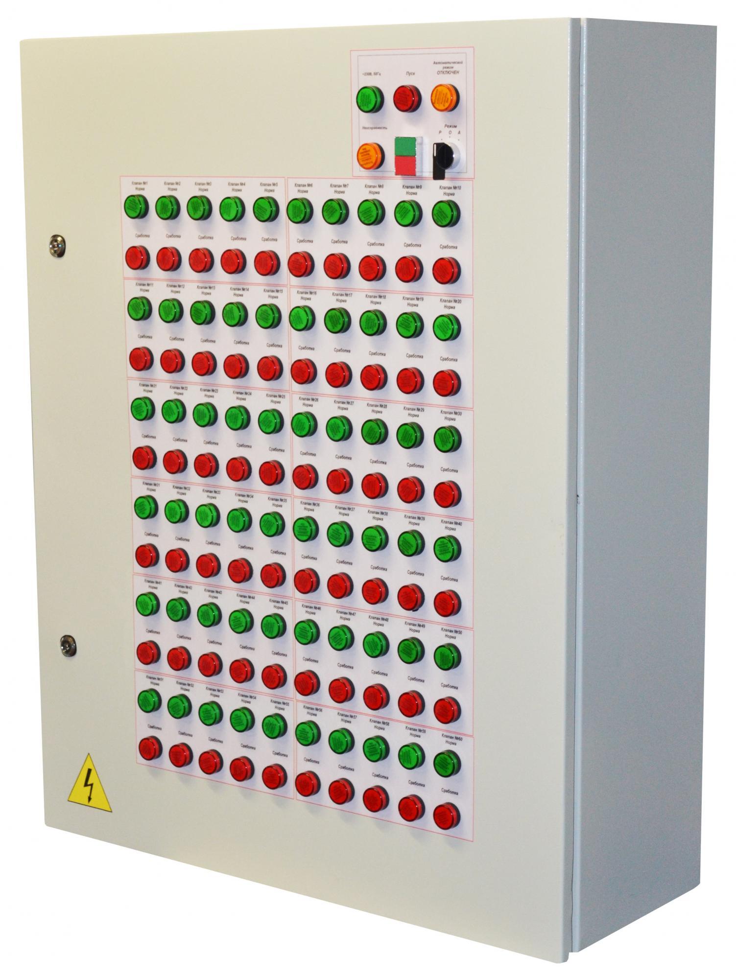 В автоматическом режиме управление клапаном осуществляется подачей на шкаф команды "Пуск" от прибора пожарной сигнализации в виде Uупр.=24В.