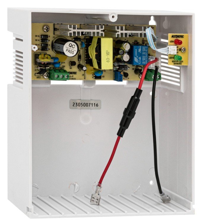 Резервированный источник питания; U-вх.165…264 В, U-вых.13.1…13.5 В, I-ном.6 А; под АКБ 12 В 7 А·ч; световая индикация режимов работы, защита аккумулятора от глубокого разряда, 168.5×193.2×82.8 мм, пластиковый корпус