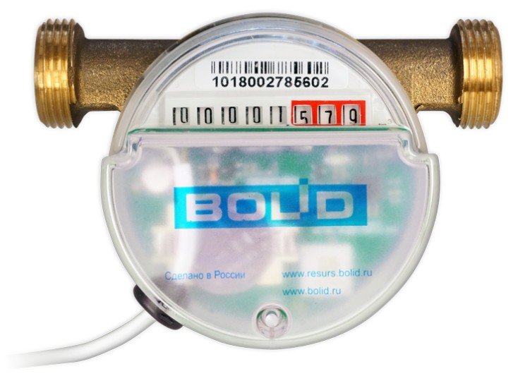 Проводной универсальный счётчик холодной и горячей воды 1/2" (Ду=15, L=110 мм) с модулем Болид "С2000-АСР1", сгонами и обратным клапаном