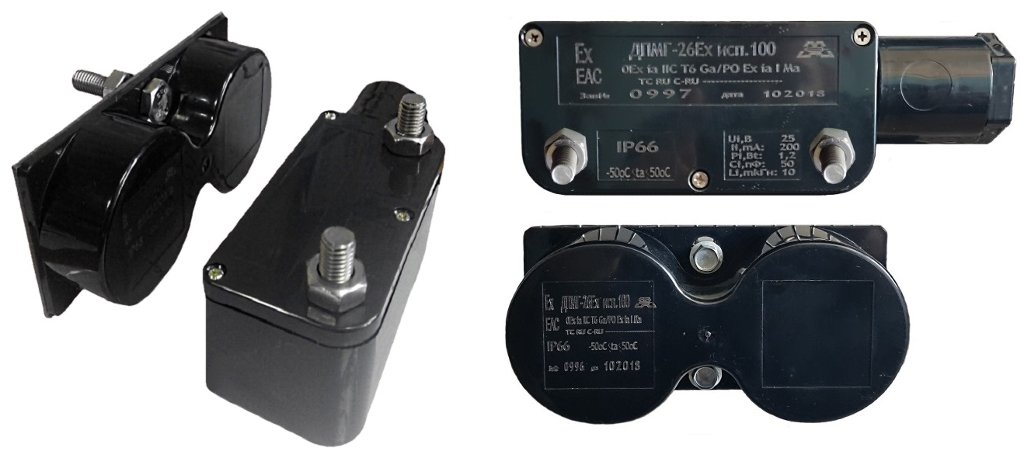 Датчики положения магнитогерконовые взрывозащищённые ДПМГ-26Ех предназначены для контроля положения перемещающихся отдельных конструкций и механизмов из магнитопроводных и не магнитопроводных материалов при выполнении различных технологических процессов во взрывоопасных зонах.
